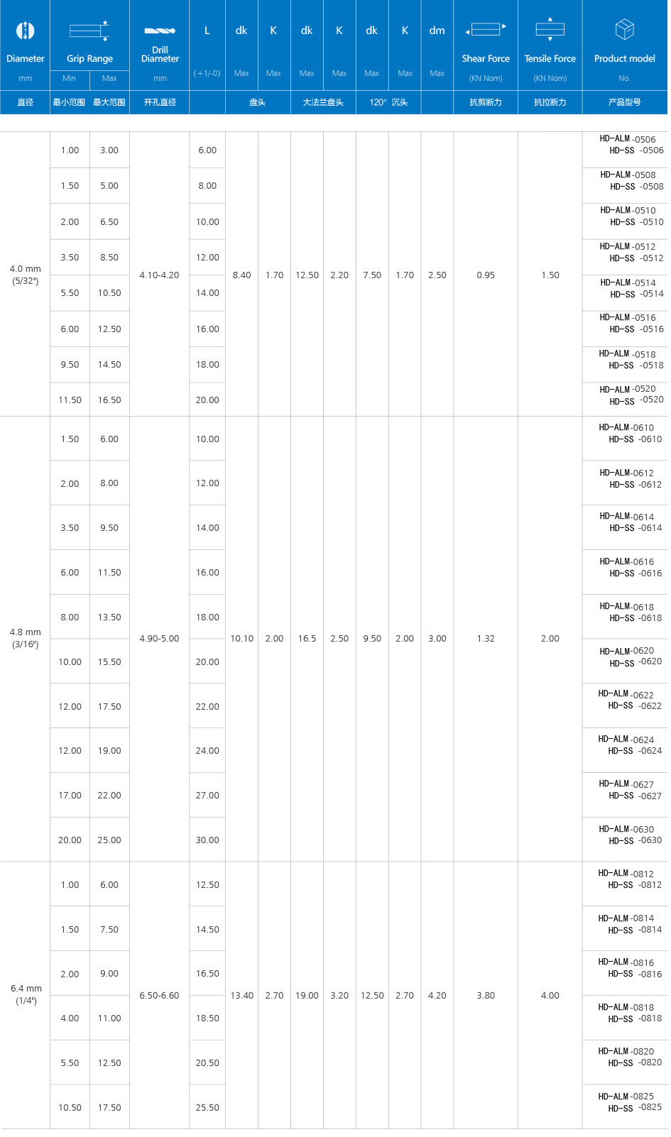 双鼓铆钉(铝、不锈钢)