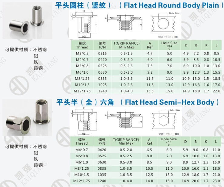 平头半(全)六角铆螺母